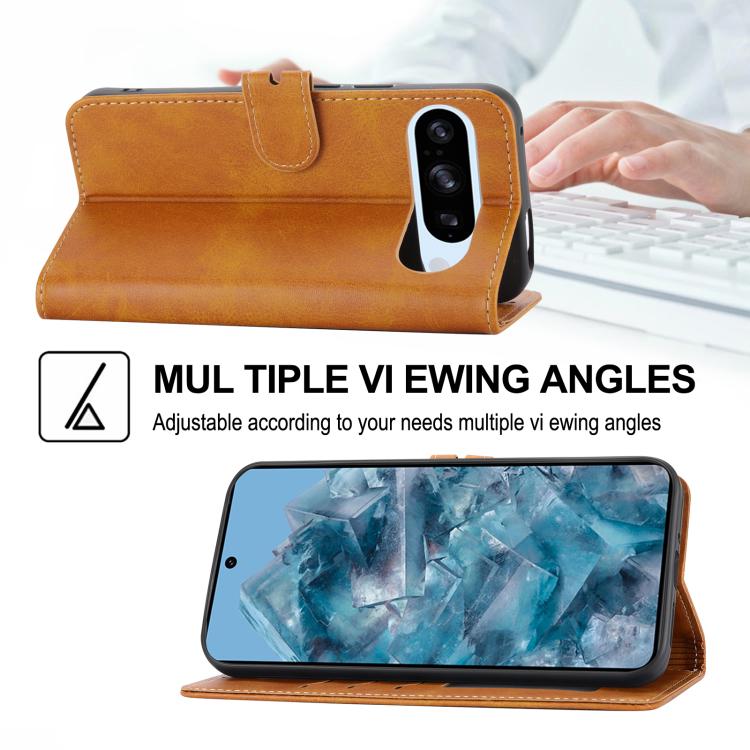 For Google Pixel 10 Pro XL Embossed Happy Cat Pattern Flip Leather Phone Case(Yellow)