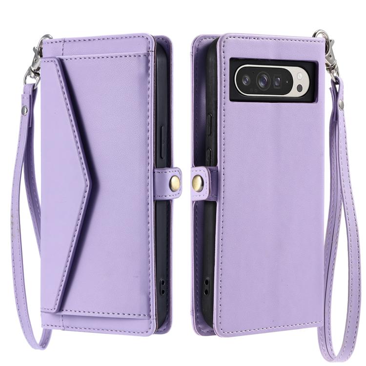 For Google Pixel 10 Pro XL Wallet Multi-card Slot Leather Phone Case with Lanyard(Purple)