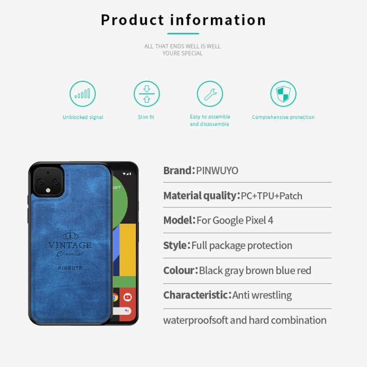 For Google Pixel 4 PINWUYO Zun Series PC + TPU + Skin Patch Waterproof Anti-fall All-inclusive Protective Shell(Black)