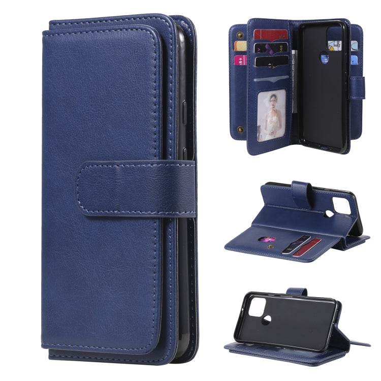 For Google Pixel 5 Multifunctional Magnetic Copper Buckle Horizontal Flip Leather Case with Bracket & 10 Card Slots & Wallet & Photo Frame(Dark Blue)