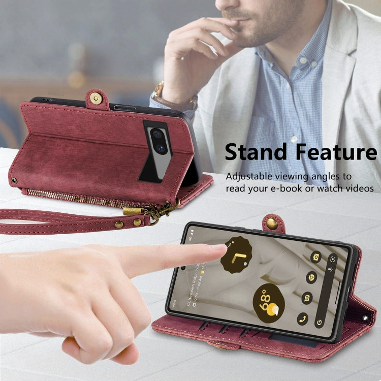 For Google Pixel 6 Geometric Zipper Wallet Side Buckle Leather Phone Case(Red)