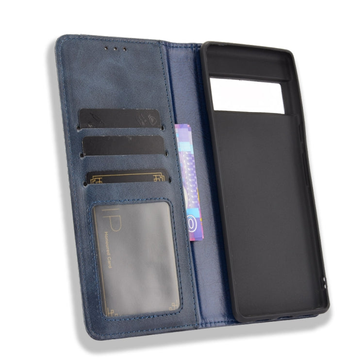 For Google Pixel 6 Magnetic Buckle Retro Crazy Horse Texture Horizontal Flip Leather Case with Holder & Card Slots & Photo Frame(Blue)