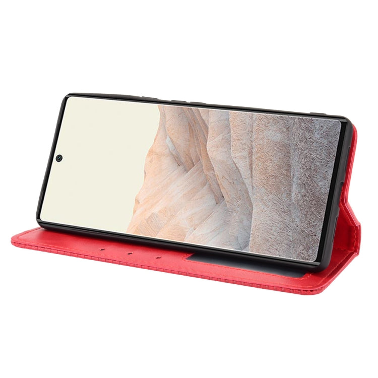 For Google Pixel 6 Magnetic Buckle Retro Crazy Horse Texture Horizontal Flip Leather Case with Holder & Card Slots & Photo Frame(Red)