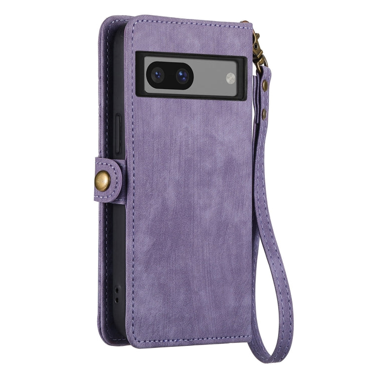 For Google Pixel 6 Pro Geometric Zipper Wallet Side Buckle Leather Phone Case(Purple)