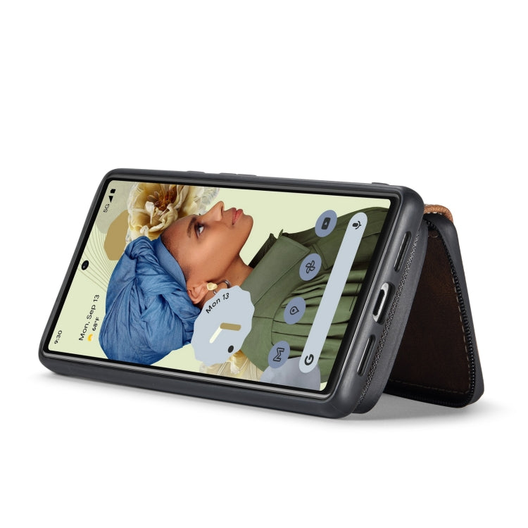 For Google Pixel 6 Pro JEEHOOD Magnetic Zipper Horizontal Flip Phone Leather Case(Brown)