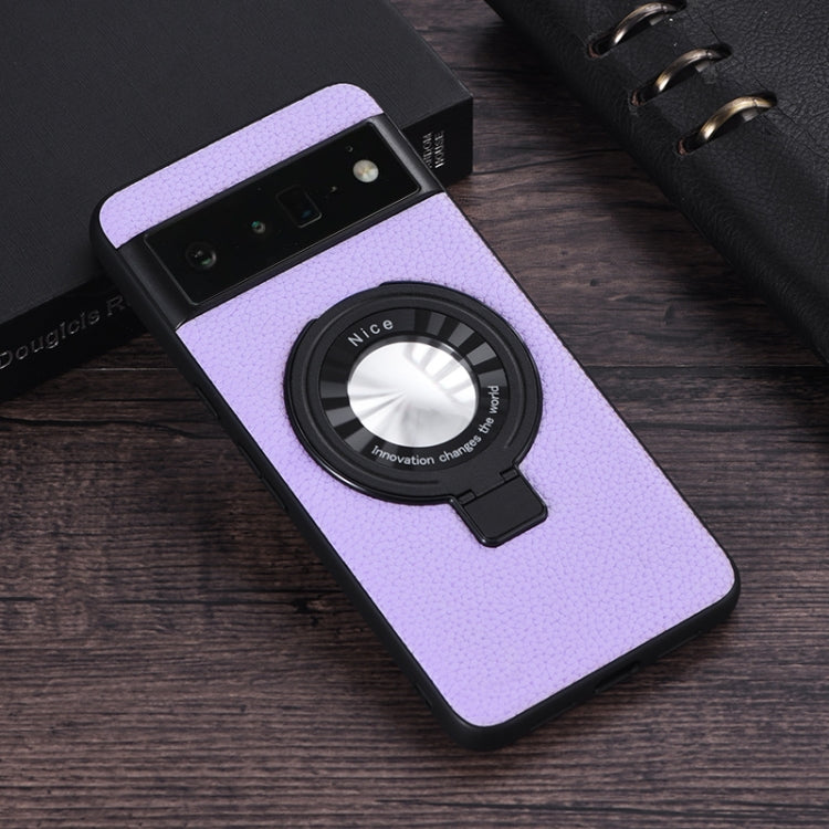 For Google Pixel 6 Pro Litchi Texture MagSafe Magnetic Ring Phone Case(Purple)
