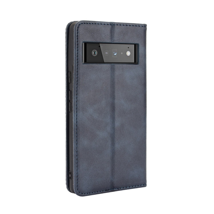 For Google Pixel 6 Pro Magnetic Buckle Retro Crazy Horse Texture Horizontal Flip Leather Case with Holder & Card Slots & Photo Frame(Blue)