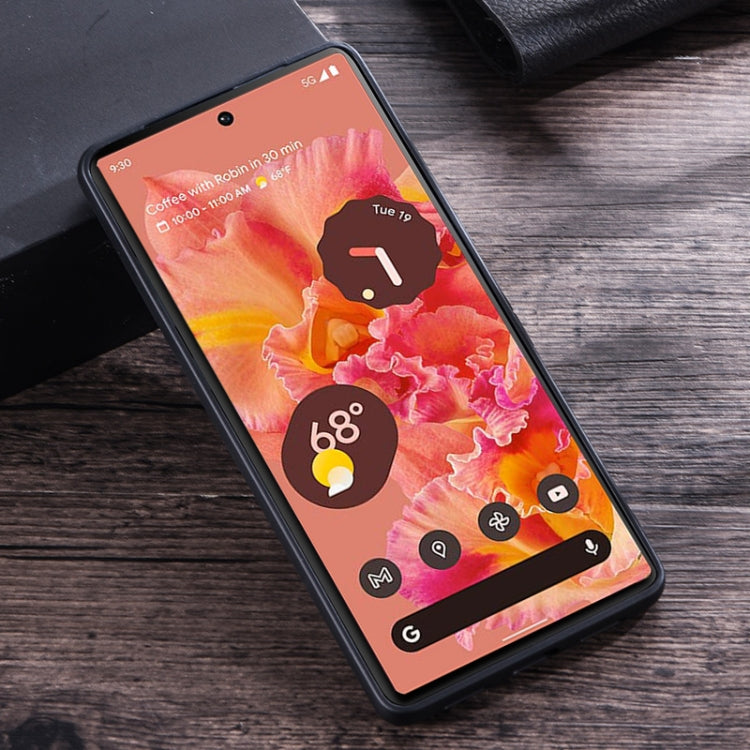 For Google Pixel 6 Pro PC + Leather Texture Protective Phone Case with Metal Holder(Black)