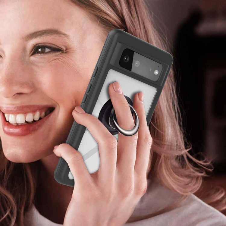 For Google Pixel 6 Starry Sky Solid Color Series Shockproof PC + TPU Protective Case with Ring Holder & Magnetic Function(Black)