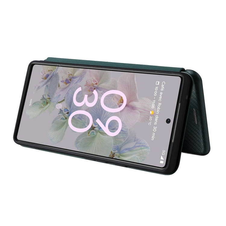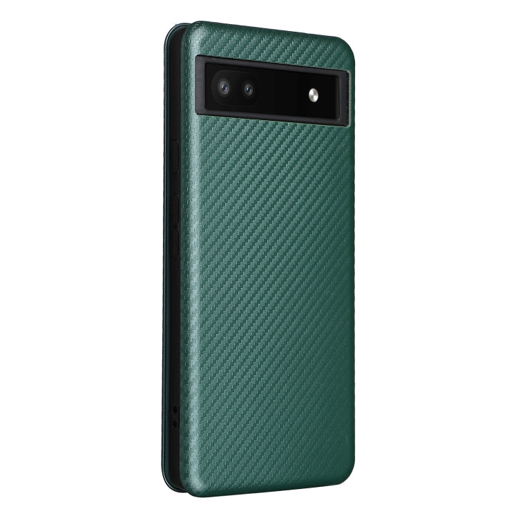For Google Pixel 6a Carbon Fiber Texture Horizontal Flip Leather Phone Case(Green)