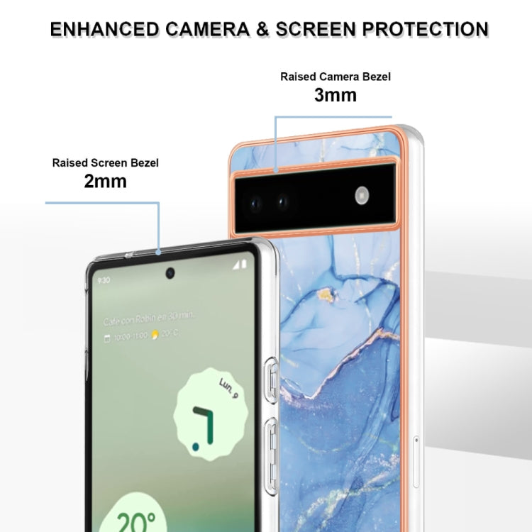 For Google Pixel 6A Electroplating Marble Dual-side IMD Phone Case(Blue 018)