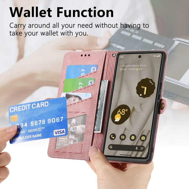 For Google Pixel 6a Geometric Zipper Wallet Side Buckle Leather Phone Case(Pink)