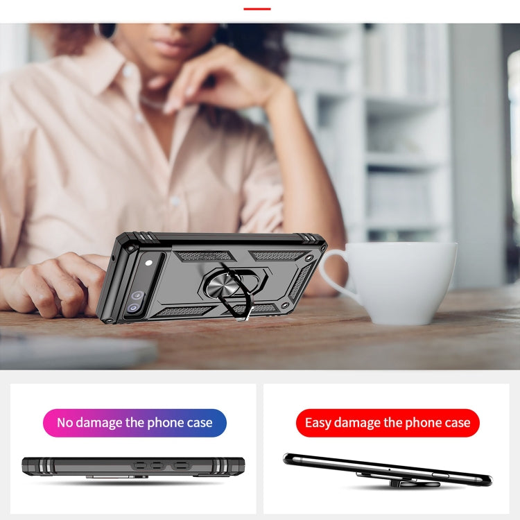 For Google Pixel 6A Shockproof TPU + PC Protective Case with 360 Degree Rotating Holder(Black)