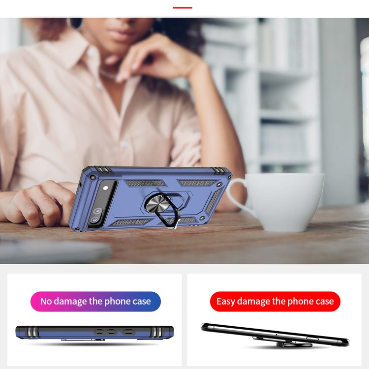 For Google Pixel 6A Shockproof TPU + PC Protective Case with 360 Degree Rotating Holder(Blue)
