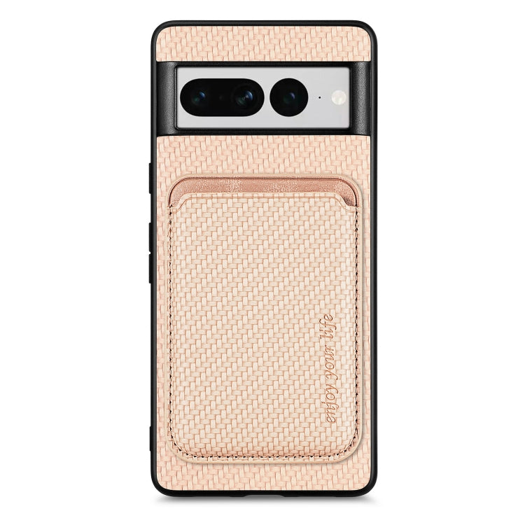 For Google Pixel 7 Pro Carbon Fiber Leather Card Magsafe Phone Case(Khaki)