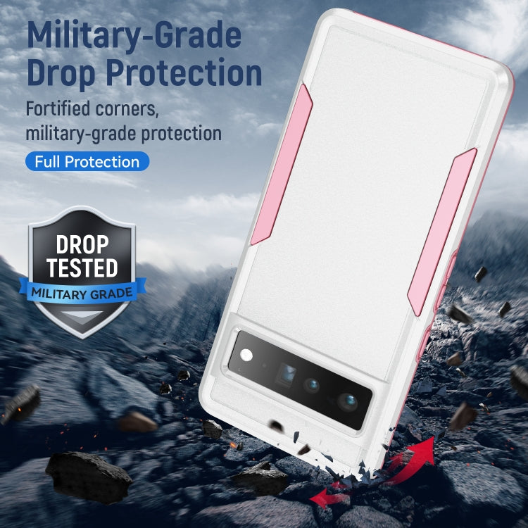 For Google Pixel 7 Pro Pioneer Armor Heavy Duty PC + TPU Phone Case(White+Pink)