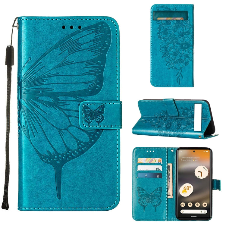 For Google Pixel 7a Embossed Butterfly Flip Leather Phone Case(Blue)