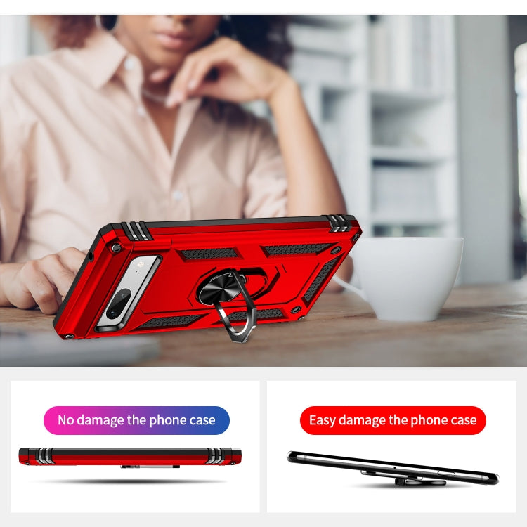 For Google Pixel 7a Shockproof TPU + PC Phone Case with Holder(Red)