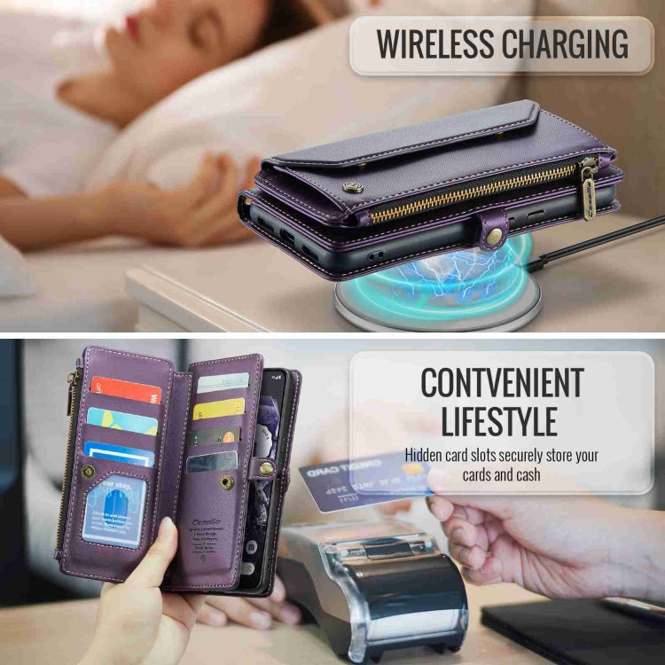 For Google Pixel 8 CaseMe C36 Card Slots Zipper Wallet RFID Anti-theft Leather Phone Case(Purple)