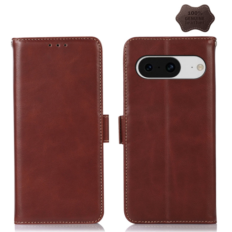 For Google Pixel 8 Crazy Horse Top Layer Cowhide Leather Phone Case(Brown)