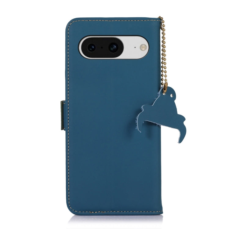 For Google Pixel 8 Genuine Leather Magnetic RFID Leather Phone Case(Blue)