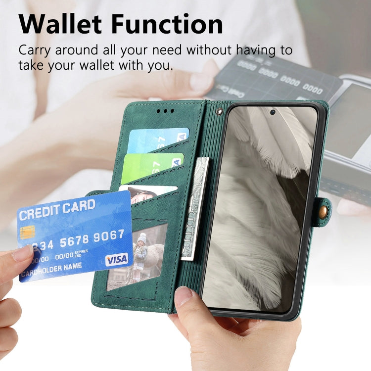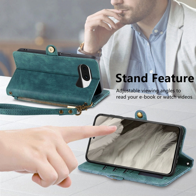For Google Pixel 8 Geometric Zipper Wallet Side Buckle Leather Phone Case(Green)