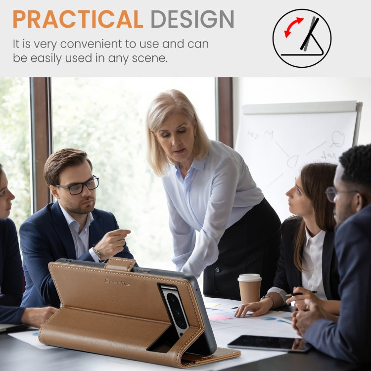 For Google Pixel 8 Pro CaseMe 023 Butterfly Buckle Litchi Texture RFID Anti-theft Leather Phone Case(Brown)
