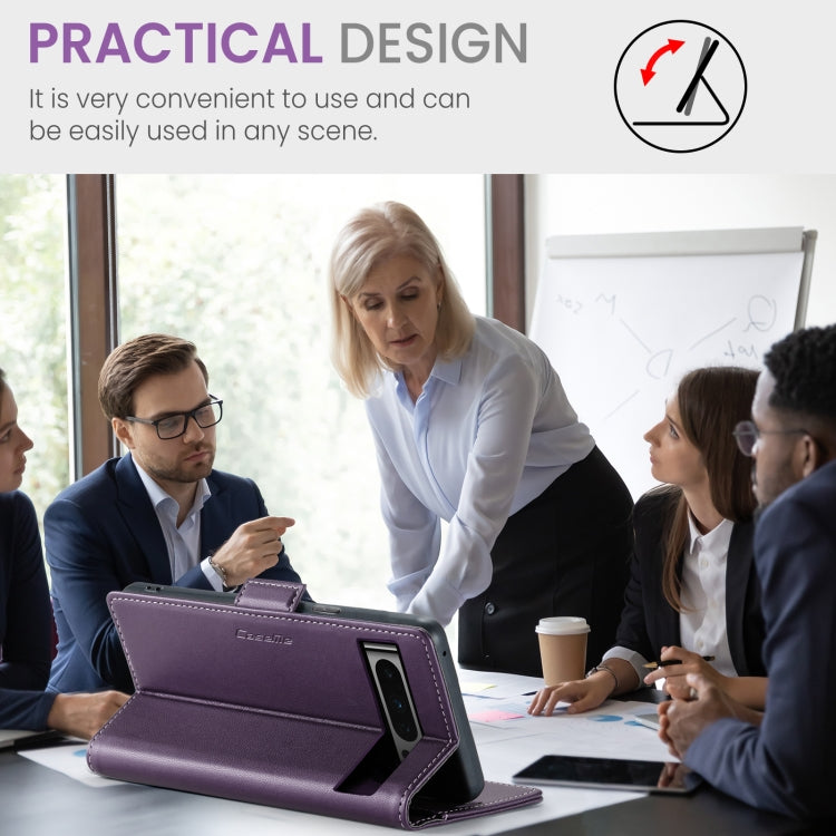 For Google Pixel 8 Pro CaseMe 023 Butterfly Buckle Litchi Texture RFID Anti-theft Leather Phone Case(Pearly Purple)