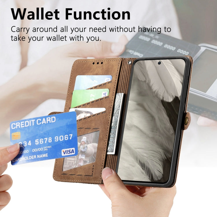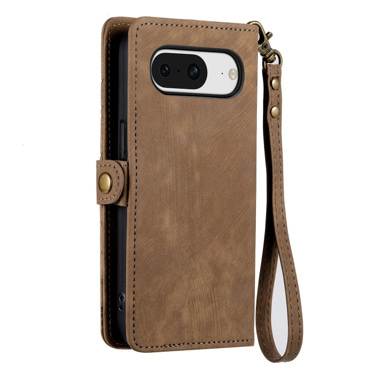 For Google Pixel 8 Pro Geometric Zipper Wallet Side Buckle Leather Phone Case(Brown)