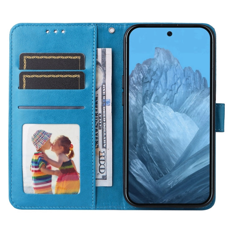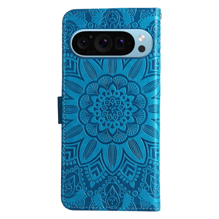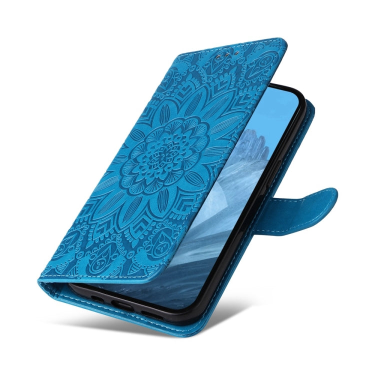 For Google Pixel 9 Embossed Sunflower Leather Phone Case(Blue)