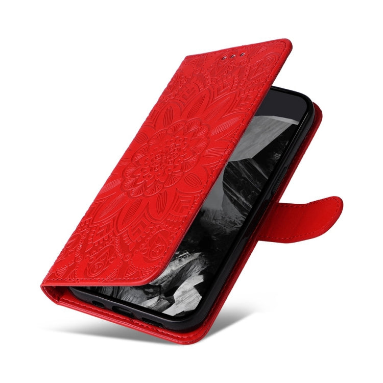 For Google Pixel 9 Pro Embossed Sunflower Leather Phone Case(Red)