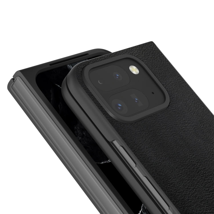 For Google Pixel 9 Pro Fold PU Leather Black Frame Full Coverage Phone Case(Black)