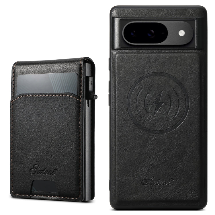 For Google Pixel 9 Pro Suteni H19 Oil Wax 2-in-1 MagSafe Removable Card Box Back Phone Case(Black)