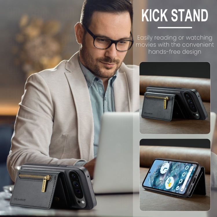 For Google Pixel 9 Pro XL DG.MING M5 Series Zip RFID Multi Card Detachable Leather Phone Case(Black)