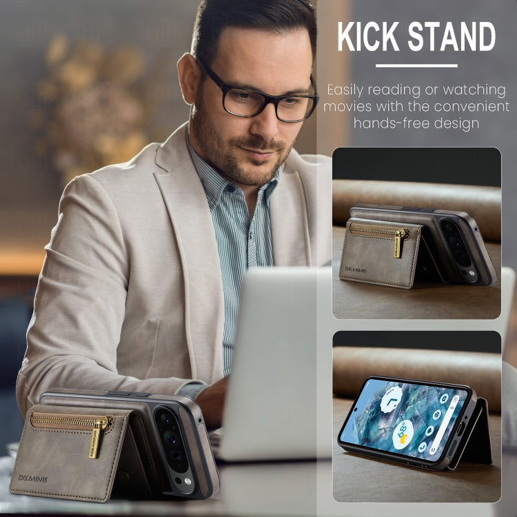 For Google Pixel 9 Pro XL DG.MING M5 Series Zip RFID Multi Card Detachable Leather Phone Case(Coffee)