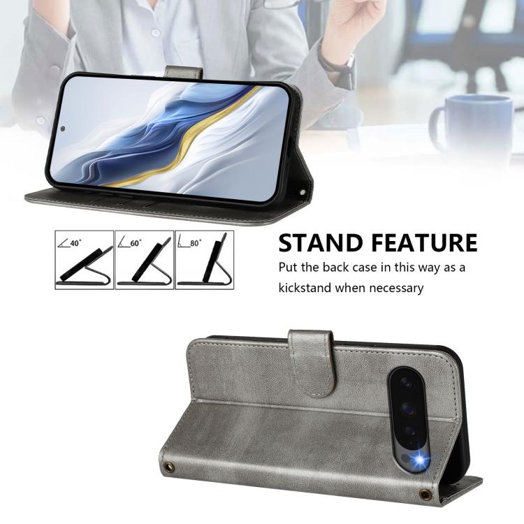 For Google Pixel 9 Pro XL / Pixel 10 Pro XL Line Splicing Buckle Retro Leather Phone Case(Grey)
