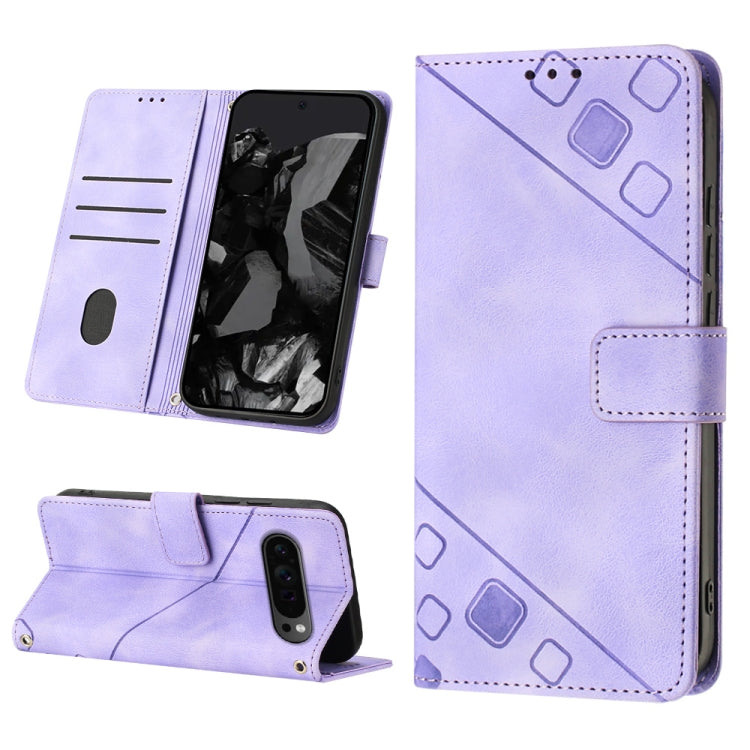 For Google Pixel 9 Pro XL Skin-feel Embossed Leather Phone Case(Light Purple)