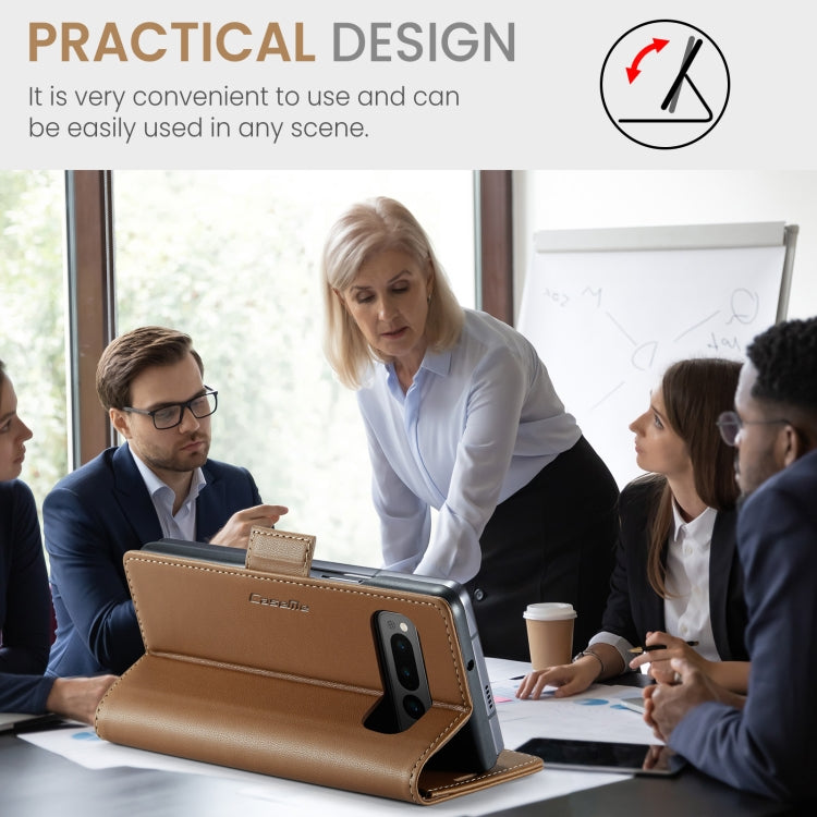 For Google Pixel Fold CaseMe 023 Butterfly Buckle Litchi Texture RFID Anti-theft Leather Phone Case(Brown)
