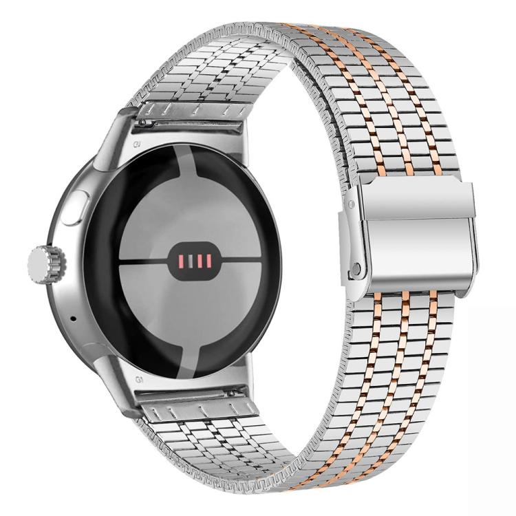 For Google Pixel Watch / Watch2 / Watch3 41mm xDfind Seven Beads Buckle Stainless Steel Watch Band(Silver Rose Gold)