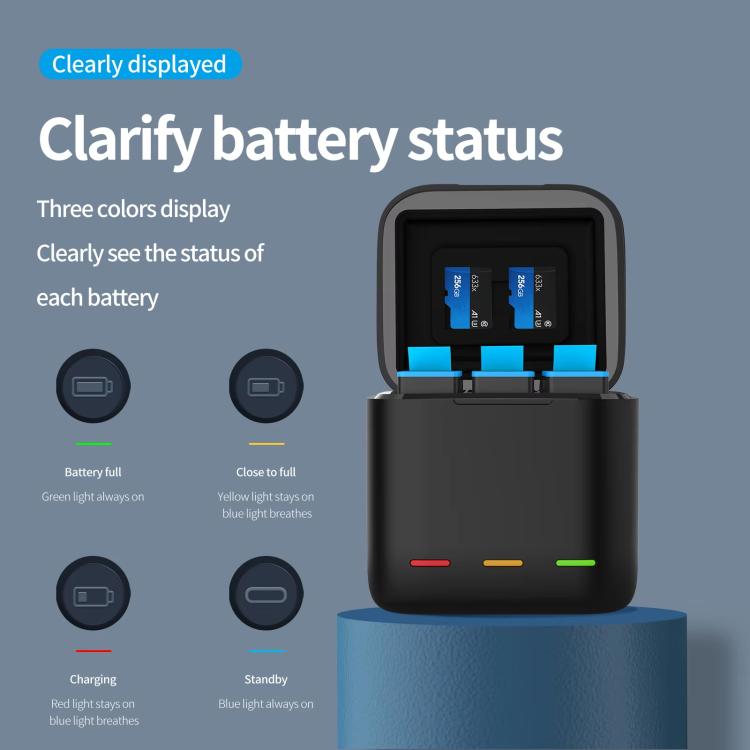 For GoPro HERO13 Black TELESIN 3 Slots Charging Case Compact Storage Box(Black)