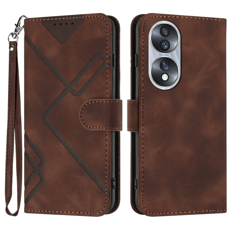 For Honor 70 Line Pattern Skin Feel Leather Phone Case(Coffee)