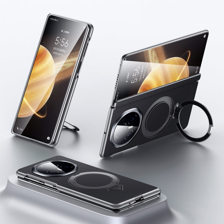 For Honor Magic V3 SULADA Top Grain Leather MagSafe Magnetic Holder Phone Case(Black)
