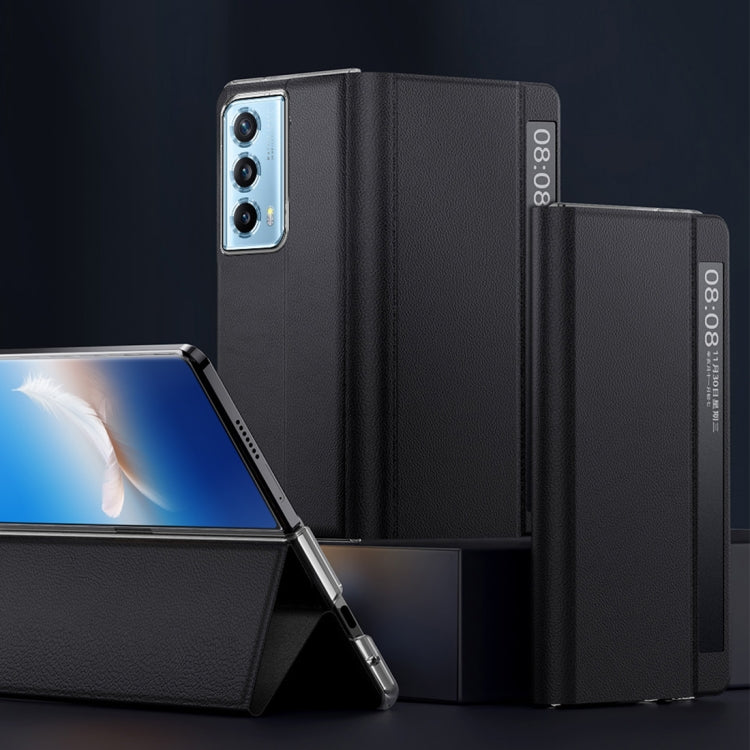 For Honor Magic Vs2 Attraction Flip Holder Side Window Smart Leather Phone Case(Black)