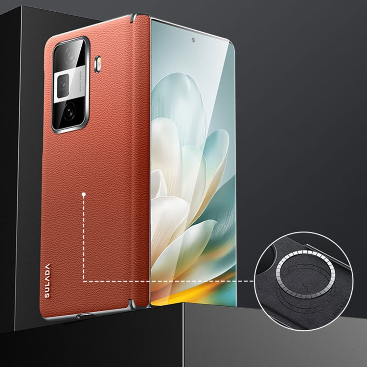 For Honor Magic Vs3 SULADA Frameless Top Layer Cowhide Leather + PC Phone Case(Dark Brown)