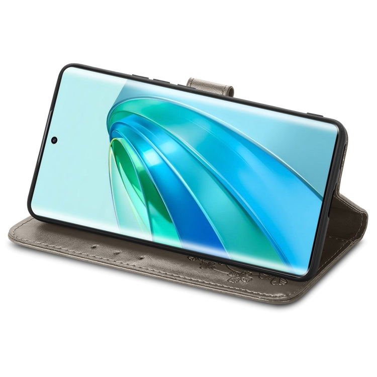 For Honor Magic5 Lite Four-leaf Clasp Embossed Buckle Leather Phone Case(Gray)