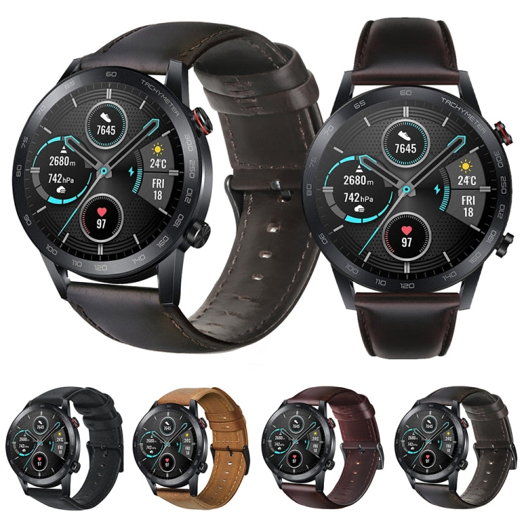 For Honor MagicWatch 2 46mm / Magic / Watch Dream Oil Wax Genuine Leather Watch Band(Yellow Brown)
