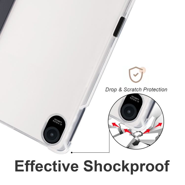 For Honor Pad 8 3-folding Transparent TPU Smart Leather Tablet Case(Black)