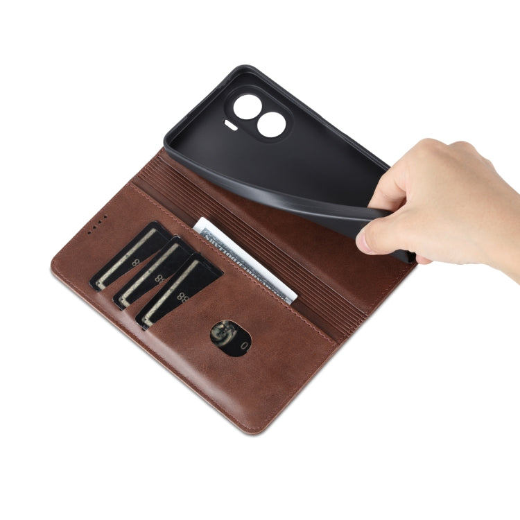 For Honor X40i AZNS Magnetic Calf Texture Flip Leather Phone Case(Dark Brown)