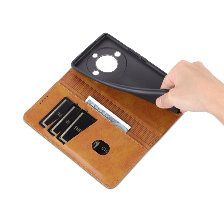 For Honor X50 AZNS Magnetic Calf Texture Flip Leather Phone Case(Light Brown)
