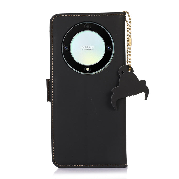 For Honor X9a 4G Genuine Leather Magnetic RFID Leather Phone Case(Black)